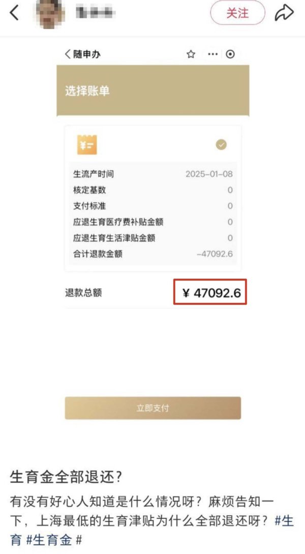有人被要求退回4.7万元。还有一名2022年生孩子的妈妈,被要求退款5.5万元。这名妈妈惊慌地喊“天塌了”,并怒斥当局“你干脆来把我收入全抢了去吧”。