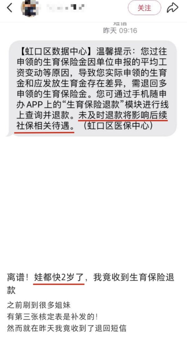 连日来,许多上海妈妈在网上爆料称,自己收到医保部门的短信或书面通知,要求退回所谓“多发的”生育津贴。