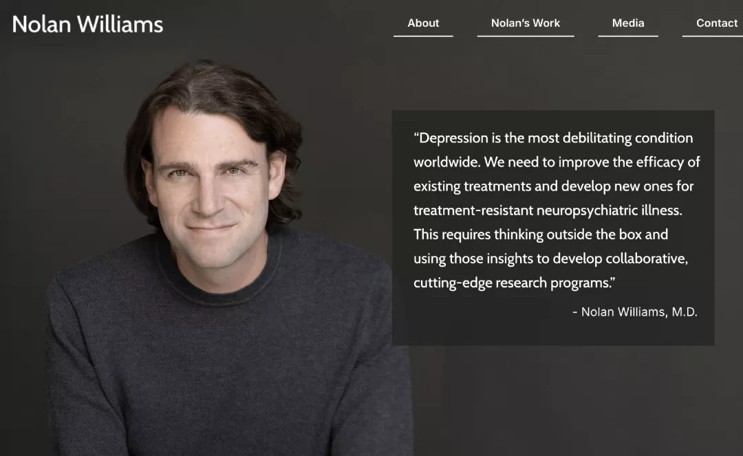 斯坦福大学有一位研究抑郁症治疗的专家自杀去世,他的名字是诺兰·威廉姆斯,去世时年仅42岁。