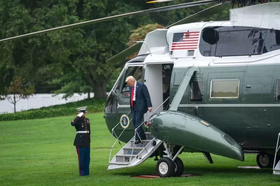9月30日,特朗普乘直升机返抵白宫