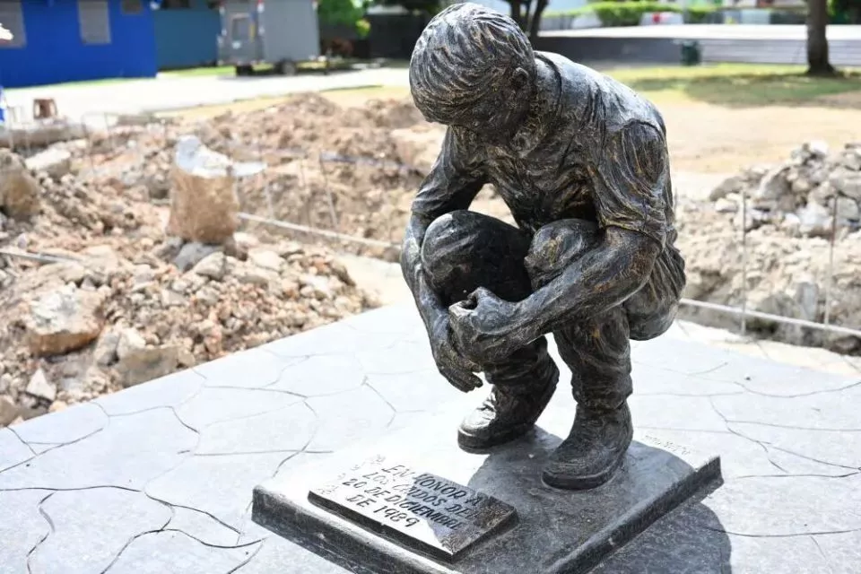 巴拿马首都巴拿马城的一尊雕像,雕像前的牌子写着“纪念1989年12月20日的遇难者”。那一天,美国发起代号为“正义事业”的军事行动,悍然入侵巴拿马,推翻当时的政府