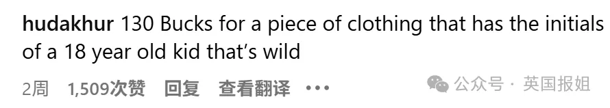 “花130美元买一件上面印着18岁小孩儿姓名首字母的衣服...现在年轻人要疯啊。”