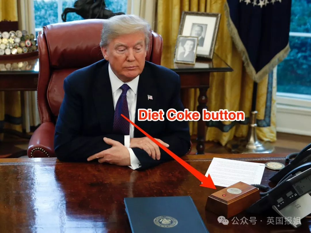 众所周知,川普对健怡可乐相当迷恋,外网还有白宫办公室里都放了专门的按钮,只要按下去就有工作人员送来可乐的说法。