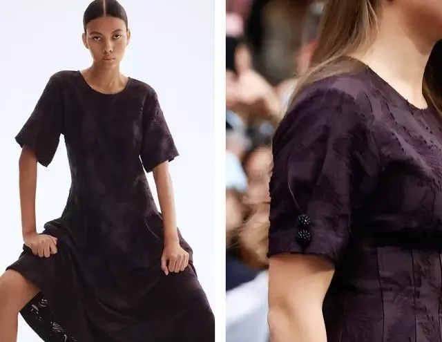 不确定是谁为莱昂诺尔选择的这条裙子,可能是她自己。据称裙子来自瑞典高街品牌,原本属于是oversize的风格,但莱昂诺尔可能是选小了尺码,也可能是重新裁剪了一下,看上去倒也不怎么宽松了。