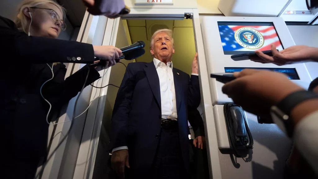 10月27日,美国总统川普在从马来西亚吉隆坡飞往日本东京的“空军一号”专机上接受记者采访。 © 美联社图片