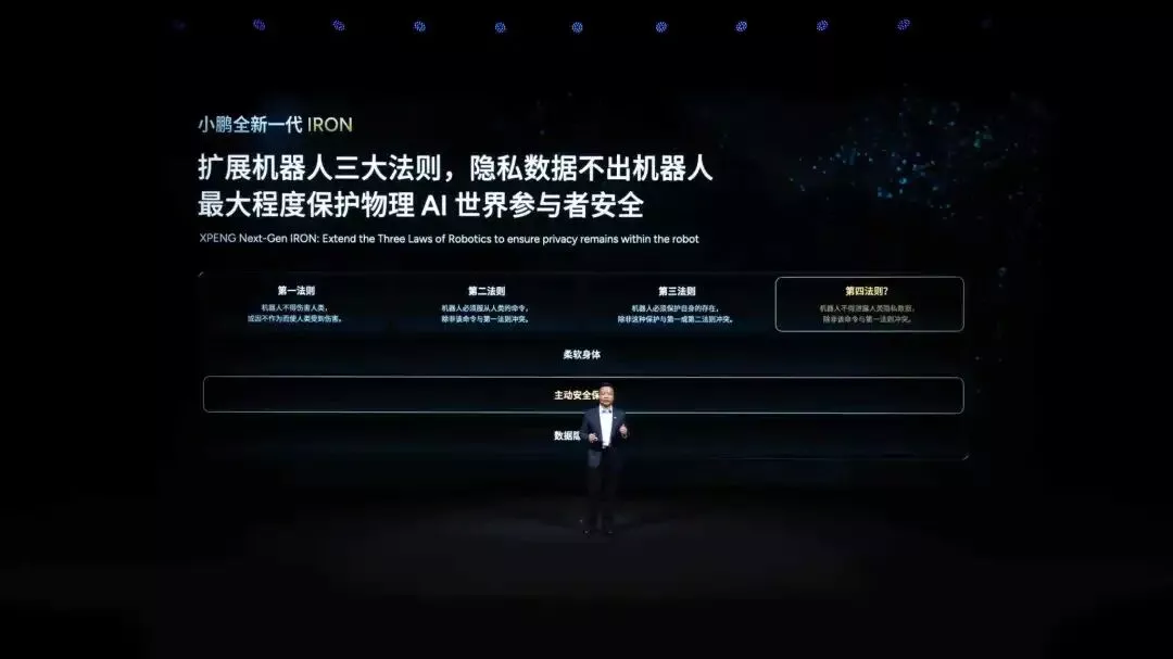 后续,小鹏还将开放 SDK,和全球开发者共建生态,并为 IRON 加入机器人「第四法则」来保障数据安全。