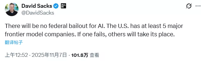 毫无疑问,这番话又把“AI泡沫”拱到市场焦点下,还呈现出一副“美国政府收拾烂摊子”的画面感。