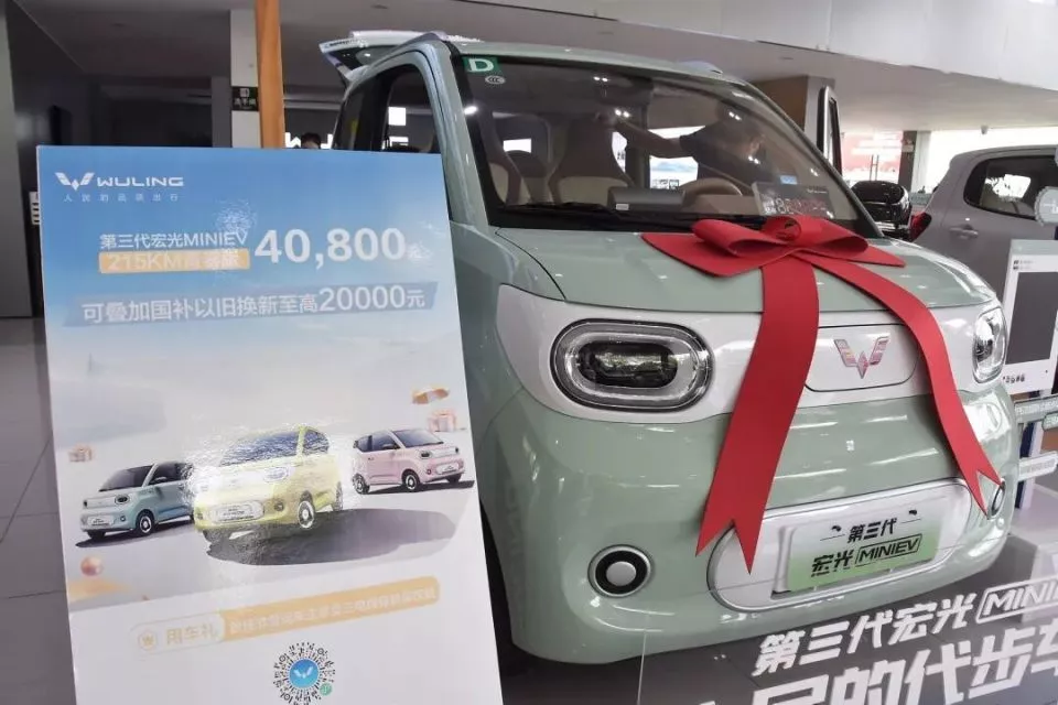 这样的一次性定额补贴机制,对售价低于5万元的新能源车,刺激作用最为明显。据财新统计,2025年上半年,报废更新申请排名前十的车辆中包含五菱宏光MINI EV、一汽奔腾小马、比亚迪海豚、长安汽车糯玉米等车型,均为A00级车,起售价均在5万元以下。叠加厂补后,有些车型甚至可以不到一万全款提新车。