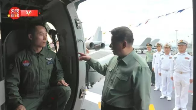 新闻联播报道,习近平登舰视察,听取甲板功能布局介绍,不时驻足察看装备设施,又与舰载机飞行员交流,详细了解战机性能和电磁弹射特点优势,勉励大家要不断提升专业技能和打仗本领,为福建舰战斗力建设贡献力量。
