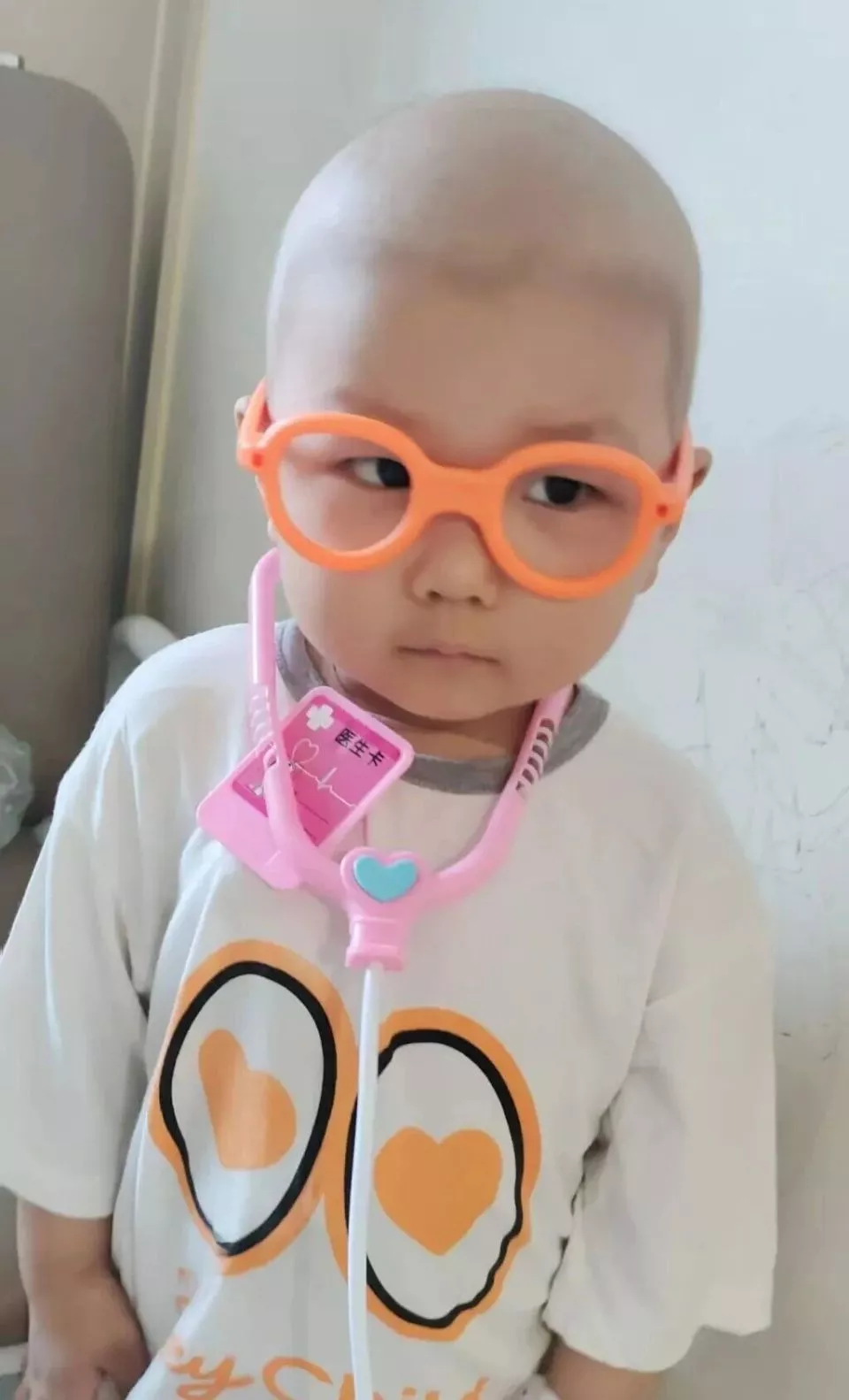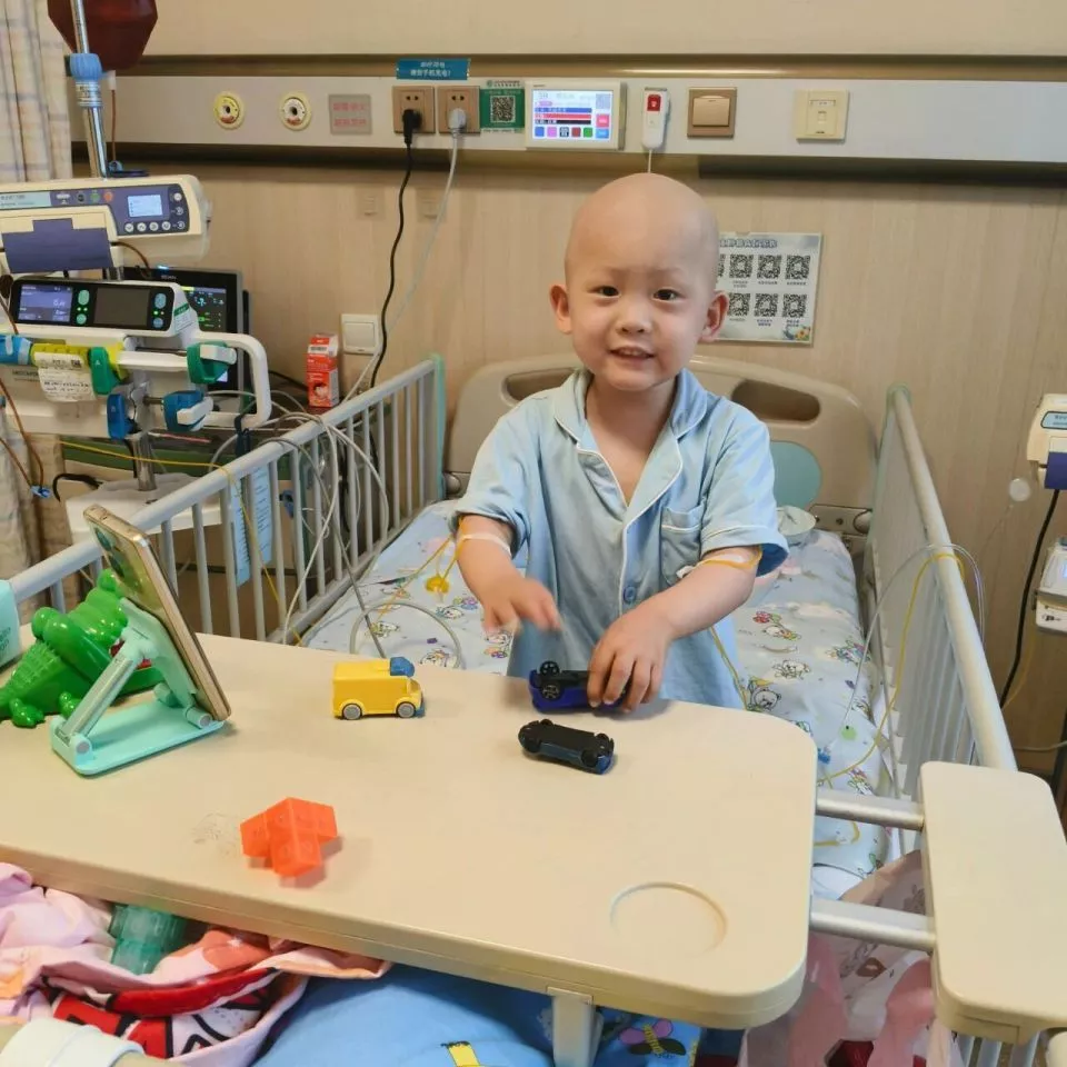 瀚邦的玩具箱里,是听诊器、注射器这类医疗用品。上次做完肝脏手术后,他向护士要了止血带、棉签和针头。瀚邦妈妈手机里还存着那张照片:孩子睡着了,小手却紧紧攥着这些“玩具”,怎么也不肯松开。