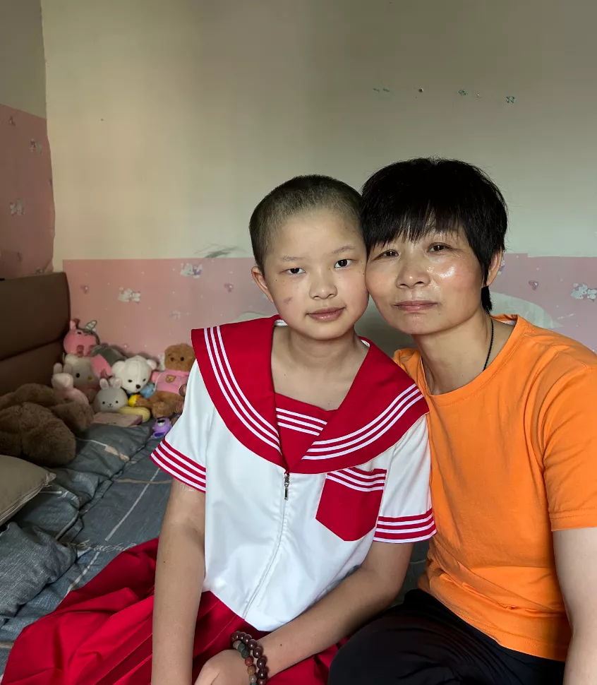 在租来的房间里,子棋和妈妈并肩坐在床沿。女儿有些依赖地靠在母亲身上,这个狭小的空间,是她们在医院之外最安稳的角落。