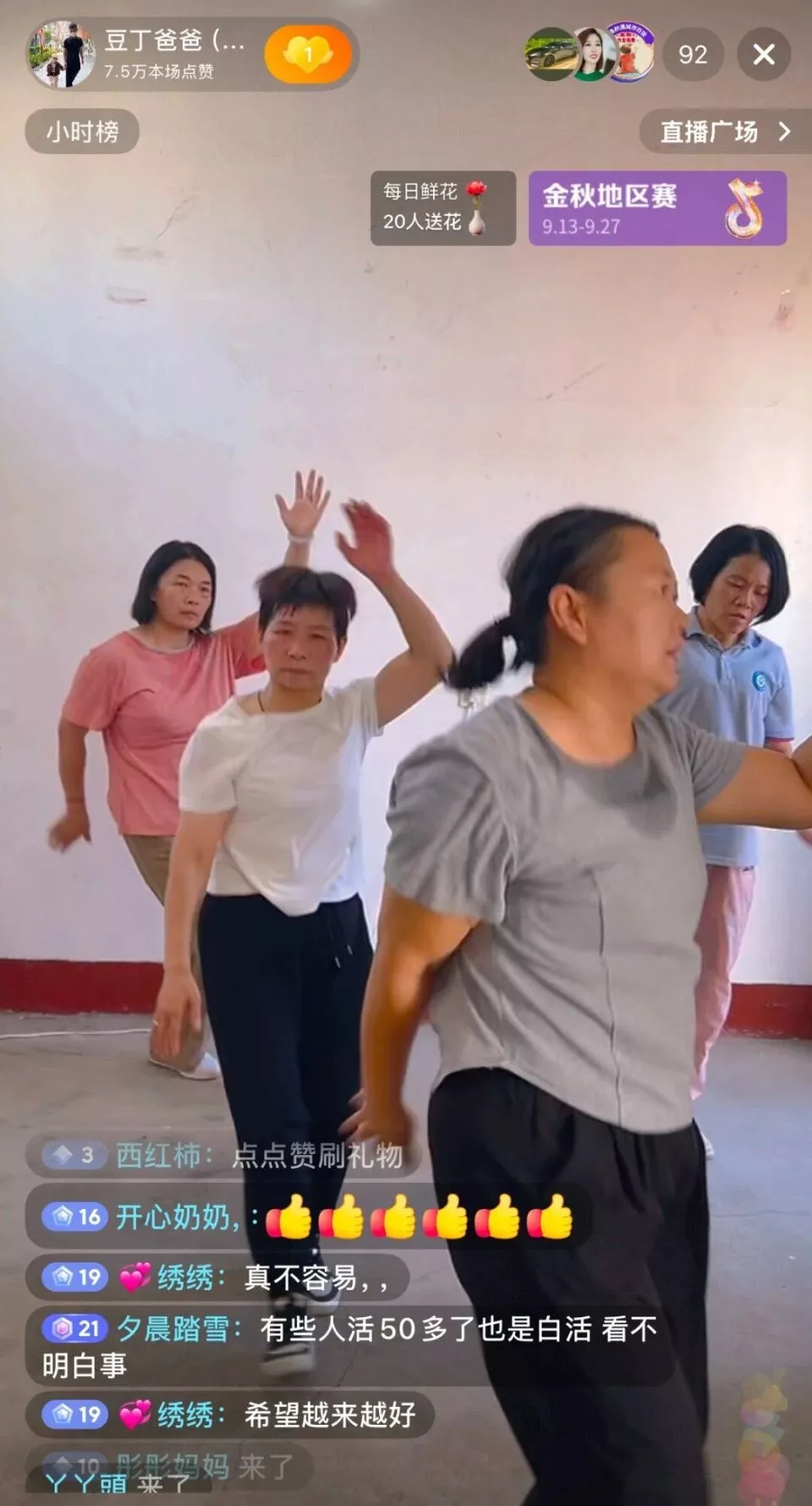 每次直播结束,她都会在院子里继续练习。把那些简单的动作一遍遍重复。遇到其他妈妈停留,她会停下来,认真请教怎么摆手更有力,怎么转身更稳当。