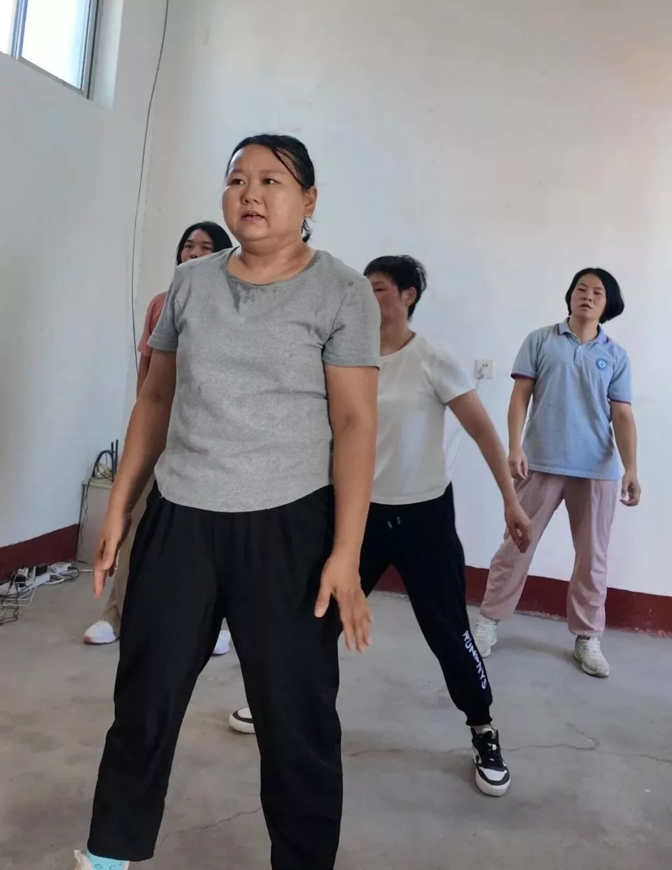 第二天,她又来到小院。妈妈们在屋里跳,她就在外面跟着比划。没有章法,只是跟着节奏晃动。短短半小时,已经达到她体能的极限。
