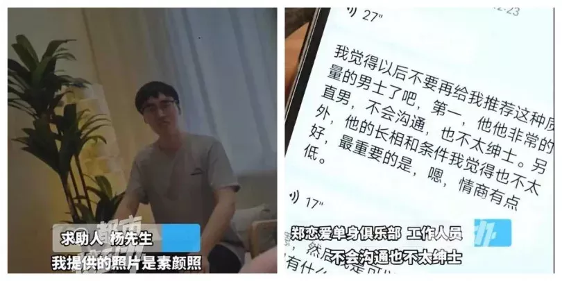 对此,“郑恋爱单身俱乐部”回应,强调与女会员均有完整沟通纪录,普遍收到的回馈是杨先生“比较直男,情商不太高”,与其自认“文采出众”不相符。机构人员也表示,相亲后都会与他进行长达三四小时的回馈与沟通,但实际见面时,问题依然未改善。
