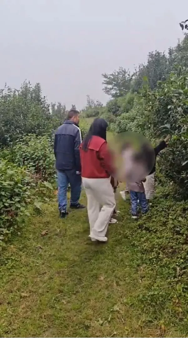 平平与其他小朋友一起採摘茶树果。(视频截图)