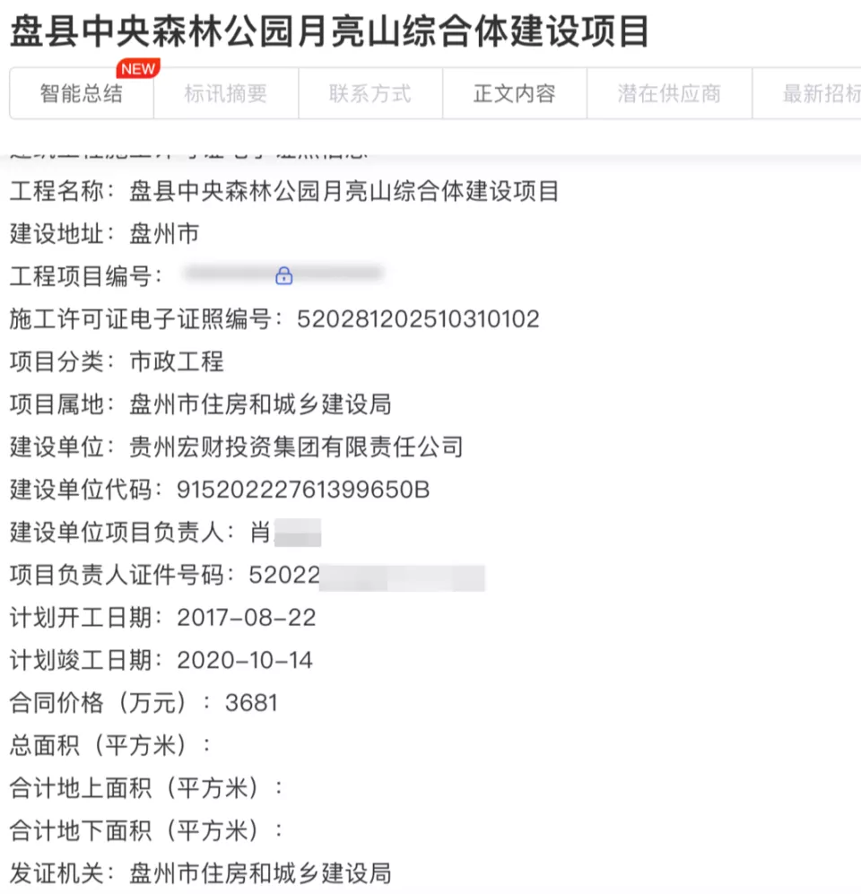 公开资料显示,月亮山综合体建设项目的管理属地为盘州市住建局。按照此前的招标计划,该项目应于2017年8月开建,2020年10月竣工。而项目停摆至今的原因,上述知情人士解释:“项目耗资巨大,因公司同步在建多个项目,因此2020年底公司因资金链断裂,导致综合体无法继续施工。”