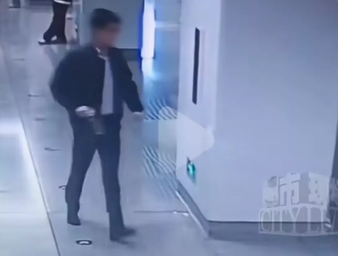 从视频中可以看到,这位靓仔,戴着黑框眼镜、身穿夹克、脚踩皮鞋、手中握着保温杯,看上去还是蛮帅的,不像是那种没有素质的人: