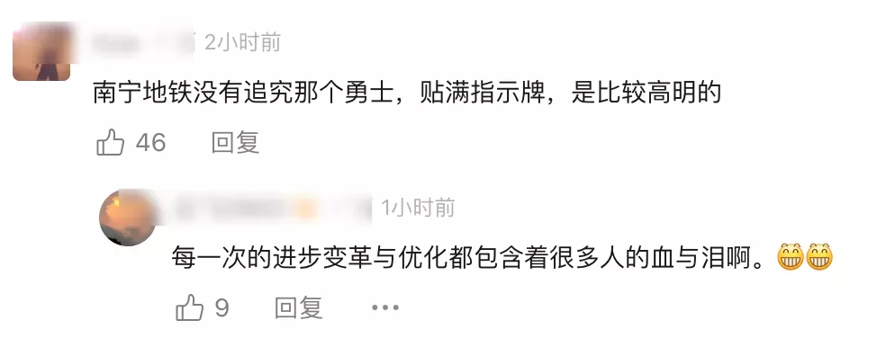 而且更值得一提的是,在回应中,南宁地铁没有对记者自夸邀功说我们的工作人员已经连夜制作并粘贴了醒目的标识牌,而是默默地去干了这些事,同时默默地对场地进行消杀,这在某种程度上,让我看到了南宁这座城市,也开始展示出了她对民众的包容性的一面。
