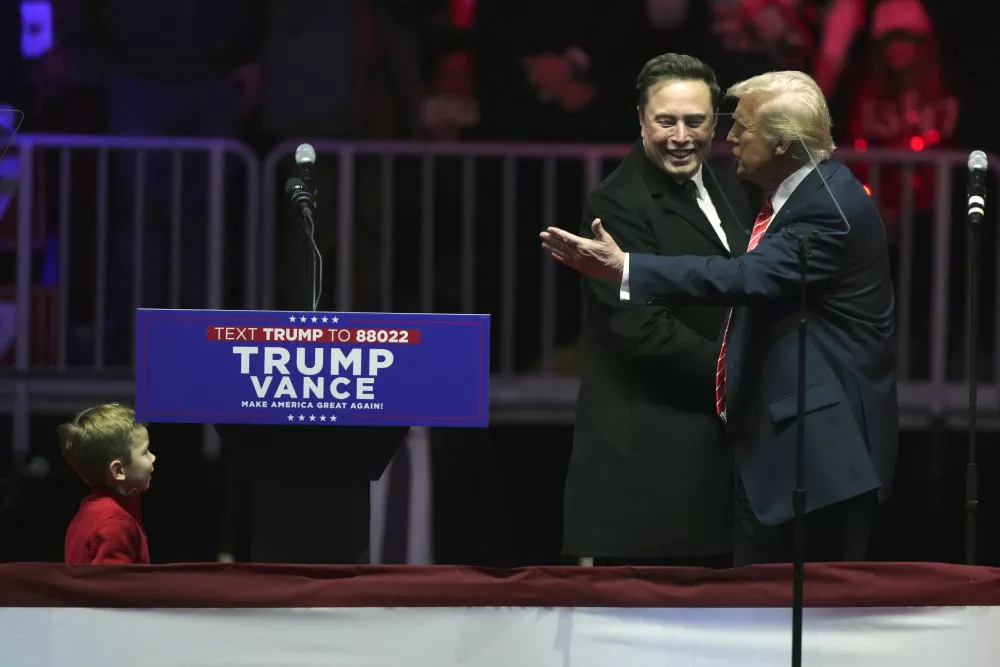 1月19日,在美国华盛顿,马斯克(左)和特朗普一起参加集会活动(资料照片)。新华社/美联