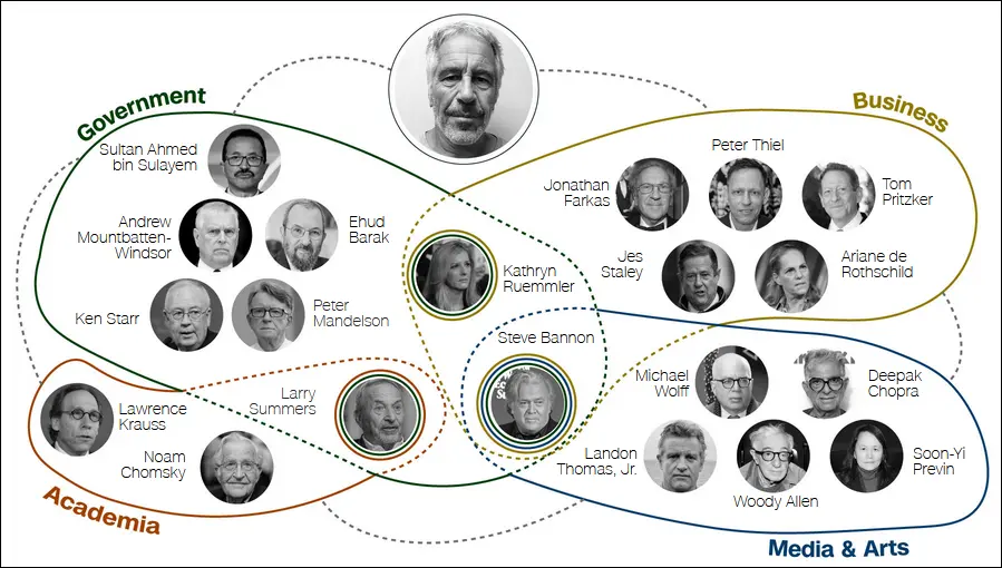 美国有线电视新闻网(CNN)梳理指出,随着新曝光的电子邮件揭露真相,一个围绕在爱泼斯坦周围的“权力网络”也浮出了水面,包括班农、曼德尔森、安德鲁王子、普利兹克等耳熟能详的名字,甚至连作家伍迪·艾伦的妻子也牵涉其中。