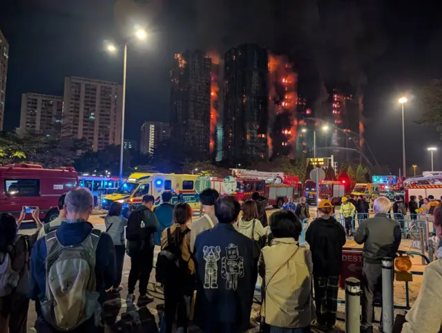 大火仍未扑灭,巿民在宏福苑附近等候