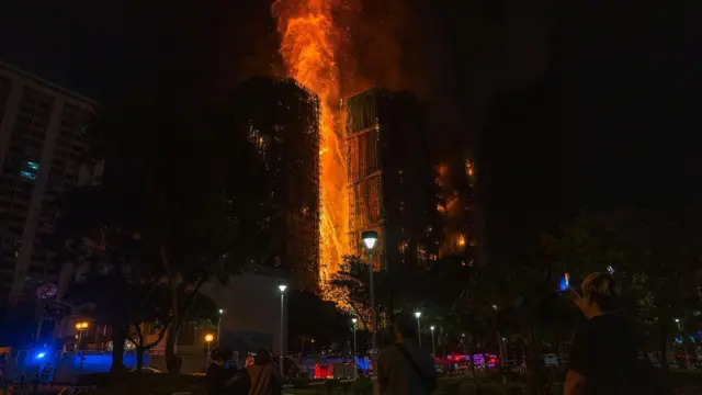 消防处副处长(行动)陈庆勇表示,2点51分接报在宏福苑宏昌阁发生火警,消防人员在5分钟后到达现场并进行风险评估。他指,火警现场面积为27米乘以21米,涉及楼高32层的住宅,外围棚架进行维修,消防到场时已起火,并有向单位内及其他大厦有蔓延趋势。