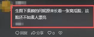 不少网友调侃:生图下素颜的闫妮原来长着一张窝瓜脸,这脸还不如素人漂亮。