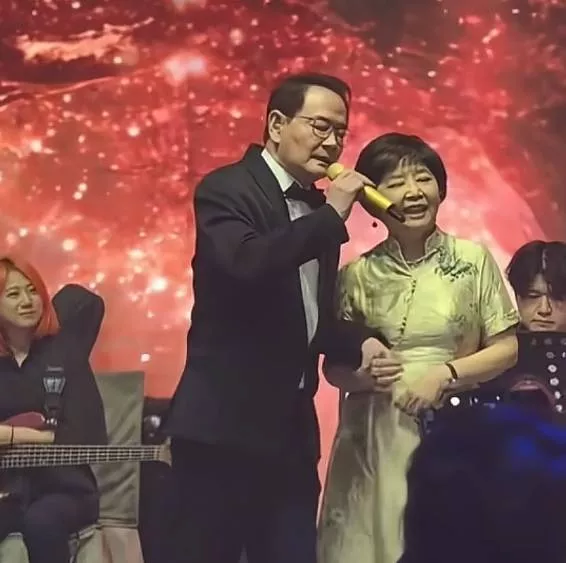 感情真挚之处,林爸爸还牵着林妈妈的手在台上深情唱歌,表情动人且气质优雅。