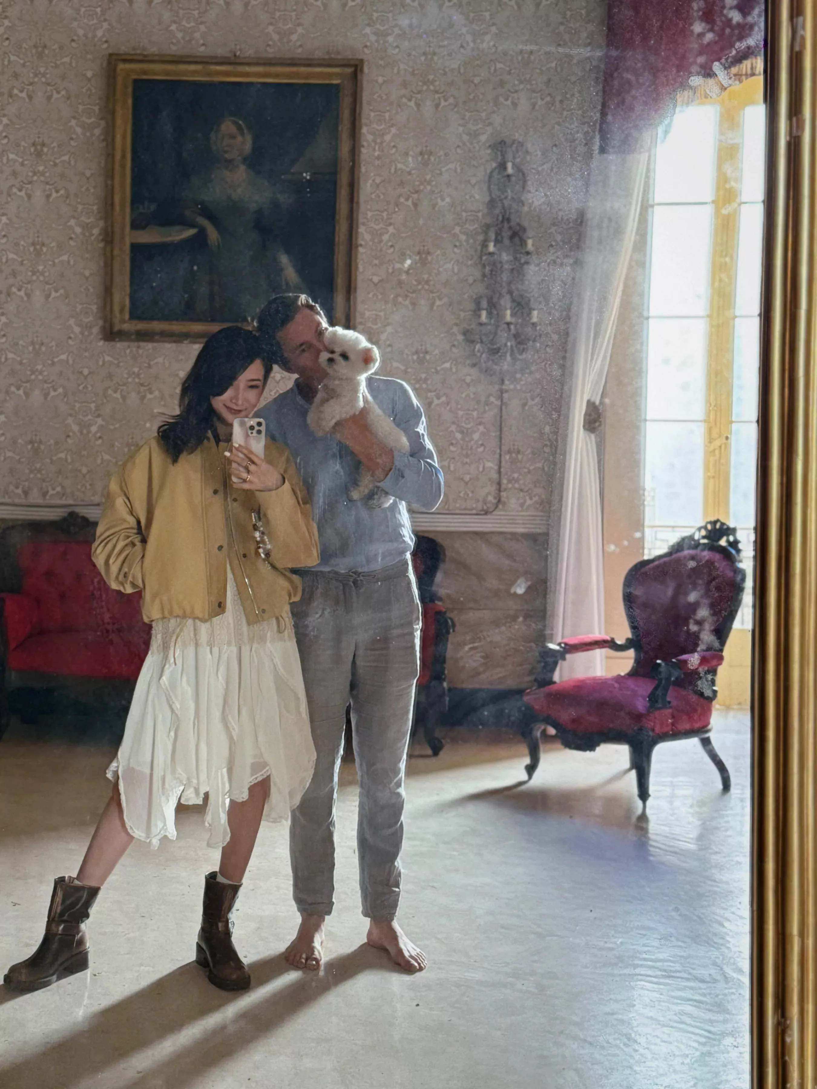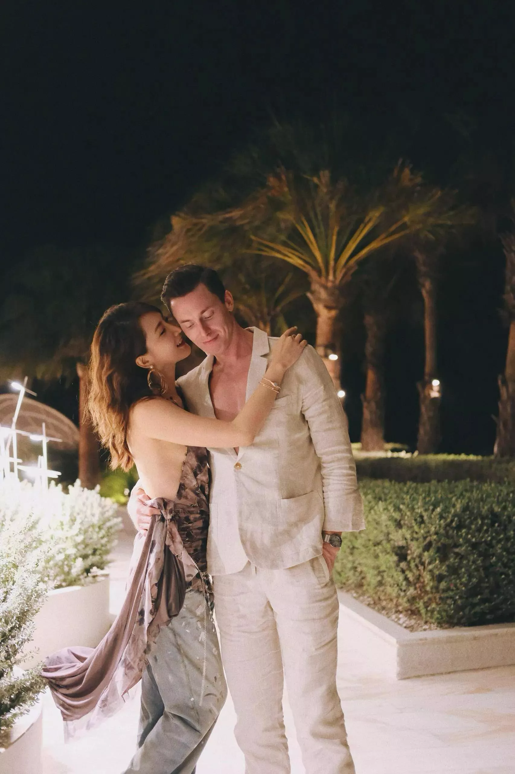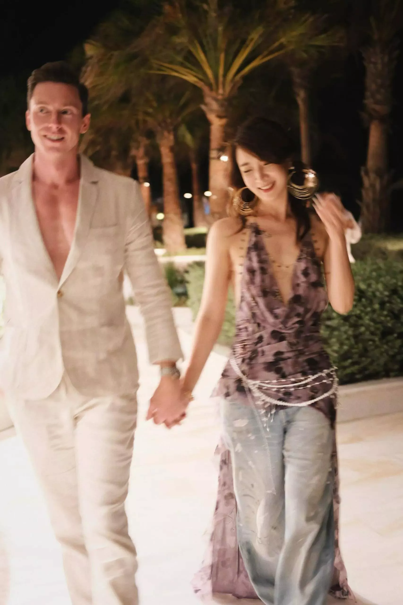 夫妻二人手牵手在度假酒店共度生日,脸上洋溢着幸福笑容,甜蜜溢于言表。两人同属高瘦纤细型,竟都选择了深V造型出镜,气质登对,令人羡慕。