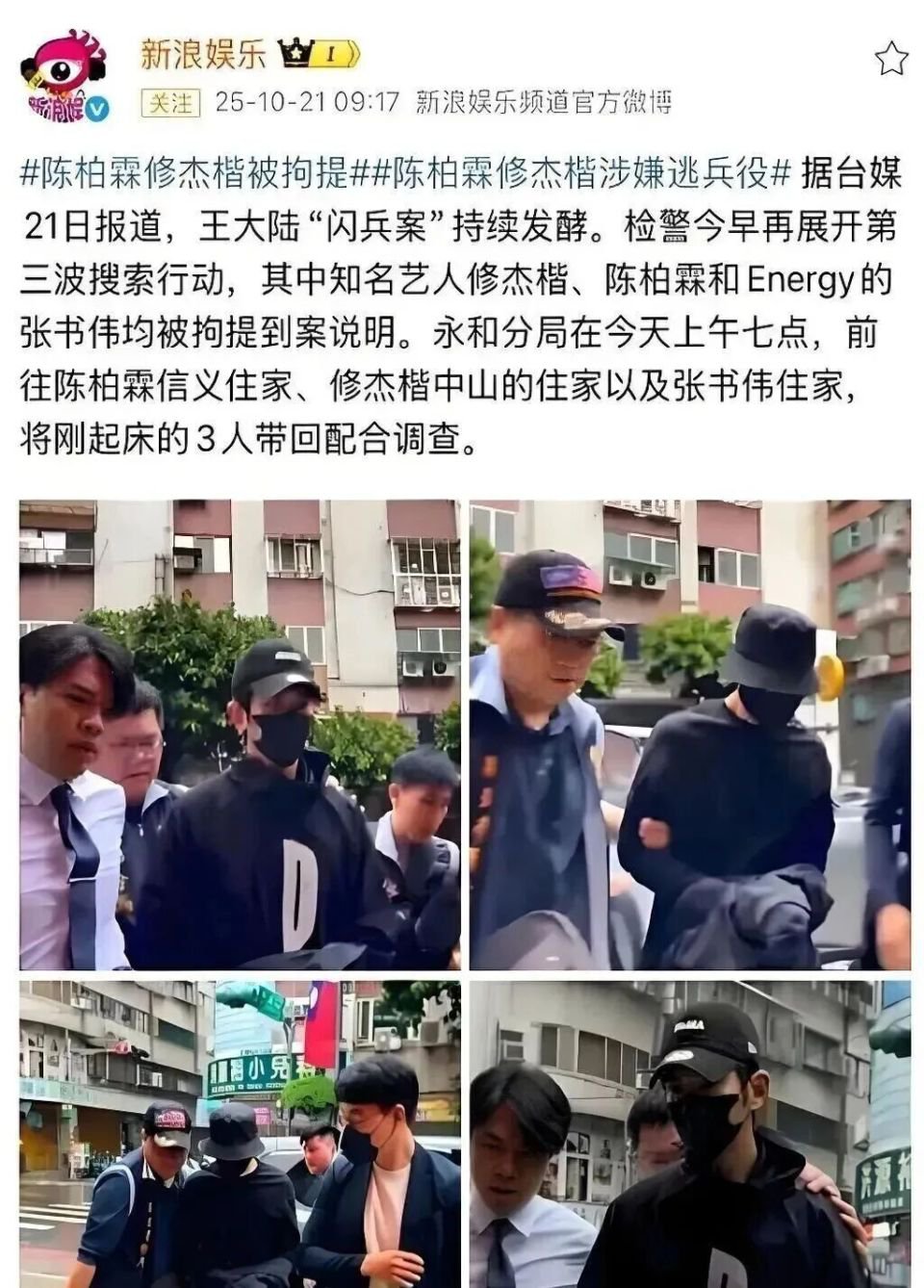 然而,好日子没过太久。2025年10月21日早晨,修杰楷“逃兵役”词条冲上热搜。根据台湾媒体报道,他被指涉嫌伪造病历以逃避兵役义务,金额约15万新台币,目前正接受检方调查。