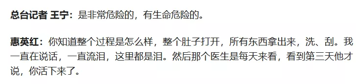 在拍摄《长辈》时,惠英红拼到自己发高烧没意识,被送到医院才知道是阑尾炎,而且已经因为太久没治疗“爆”开了。