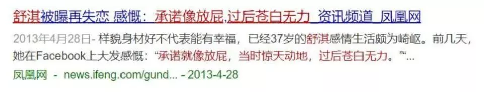 在2013年的时候,舒淇被爆出失恋,她发文:承诺就像放屁,过后苍白无力。
