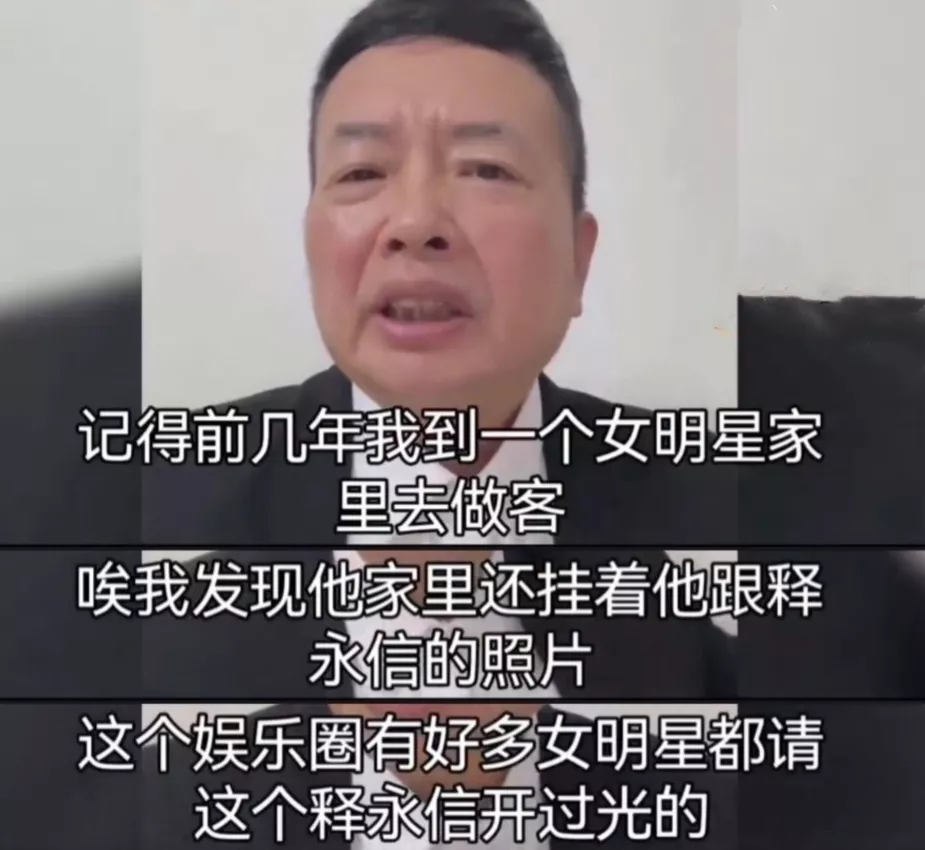 他在视频里说,娱乐圈有好多女明星找释永信“开光”。