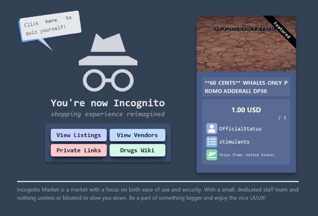 林睿庠创立的暗网毒品交易平台“隐身市场”(Incognito Market)。(翻摄美国司法部网站)