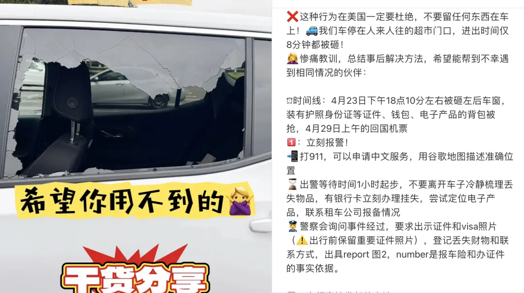 在美国,游客要面临的是毫无技术含量的打砸抢:有的人车窗玻璃直接被砸了,里面的东西被洗劫一空。