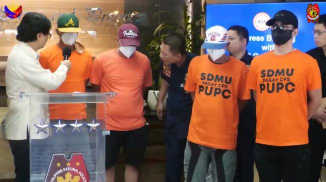 菲律宾警方2024年6月5日召开记者会讲述案情,并把4名被捕警员带到现场(影片截图)