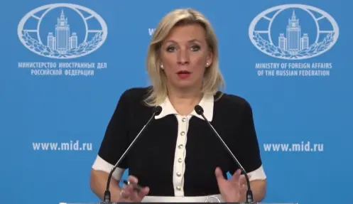 扎哈罗娃在记者会上的画面 图源:扎哈罗娃社交媒体账号视频截图