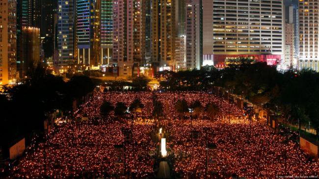 图为2011年香港维多利亚公园六四烛光纪念晚会