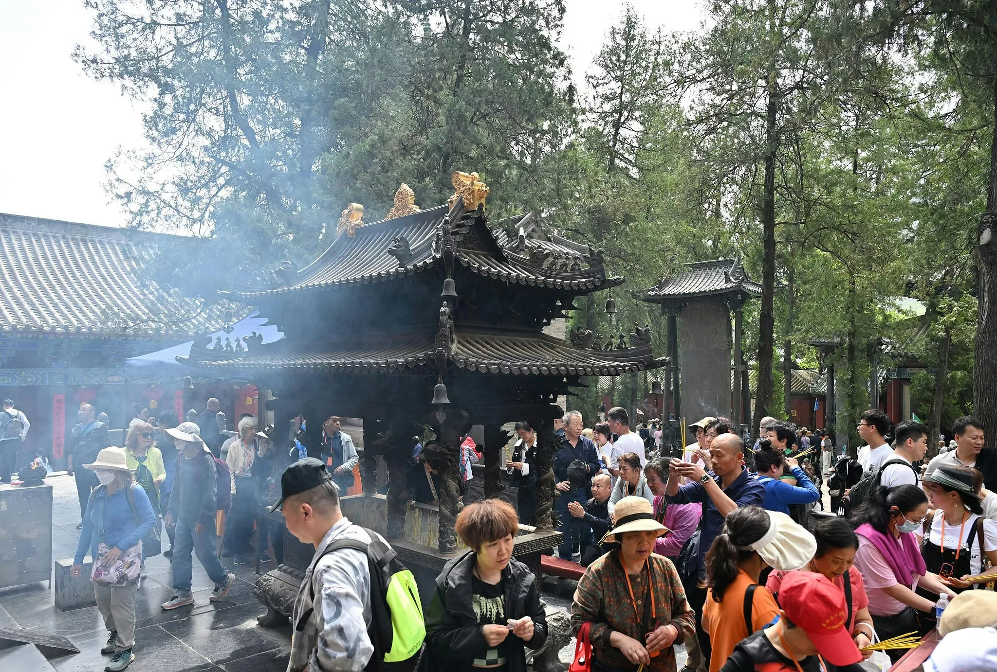 少林寺大雄宝殿前香火不断。(视觉中国)