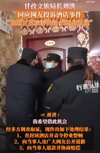 四川省甘孜州文旅局局长刘洪,在回应网友投诉康定某家酒店事件时也有过同样的霸气发言: