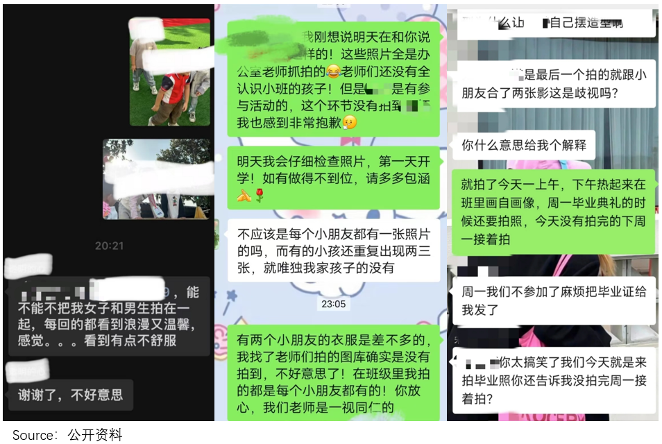 苗苗同样深受其害,每次往家长群里发照片,她都要拜托同事一起“三审三校”:有没有孩子闭眼睛了、每个孩子的照片数量是否一致……力求避免任何差错发生。