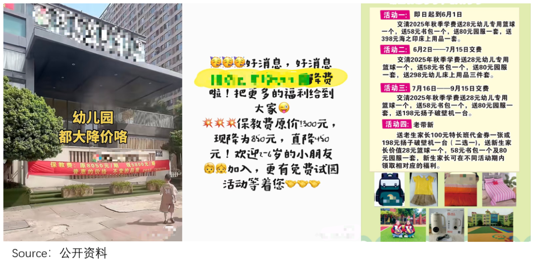 无奈之下,许多幼儿园不得不打出降价牌:降两三万还免一年餐费的不少,报名送花生油、大米甚至免一学期托管费的,也大有人在。