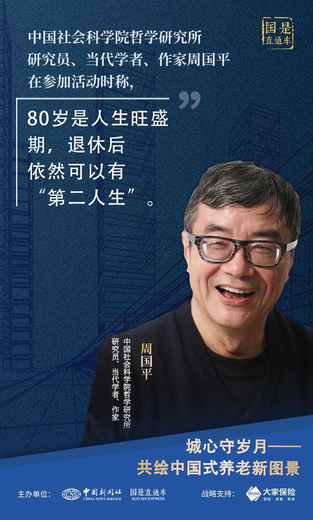 对于老年人而言,如何打造高质量的“第二人生”?中国社会科学院哲学研究所研究员、当代学者、作家周国平探讨关于养老的感悟时说,老年人要阅读、旅行、关注艺术和写作,要把“老”养成年轻的状态。