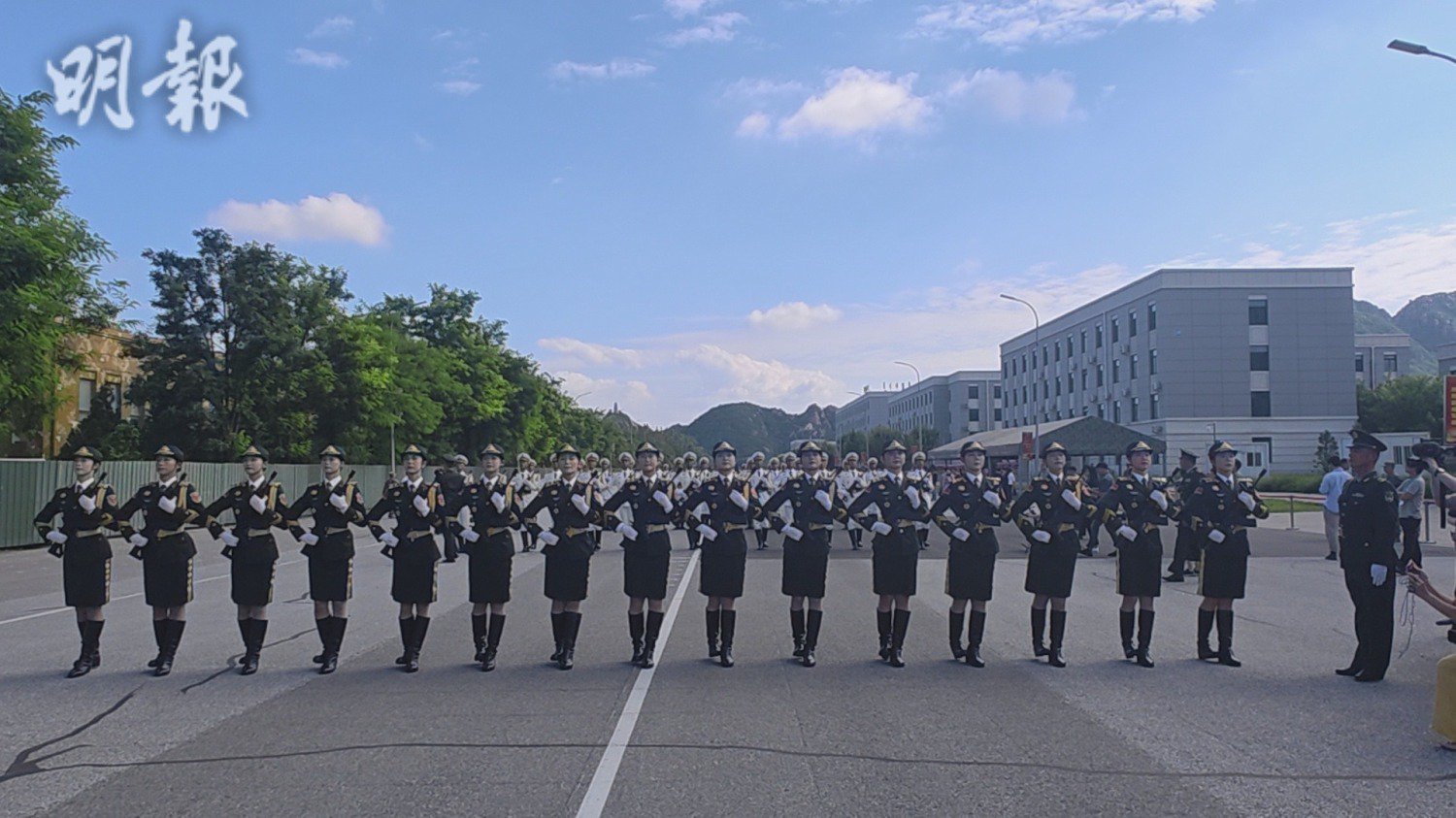 仪仗方队方队长张鼎新上校介绍今年天气炎热,后勤准备了水、绿豆汤和加餐,医疗方面有卫生站和医院,完全满足官兵们生活和医疗需求。