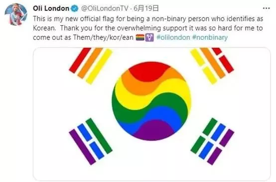 他把韩国国旗偷来改造了一番,加入了彩虹元素,然后声称自己是“非二元韩国人”,引发大批韩国网友的愤怒。