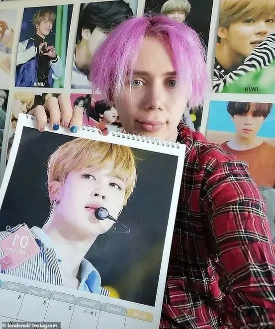 故事从2019年开始,当时他因为迷恋韩国偶像团体防弹少年团,花了12万英镑,把自己整容成防弹少年团成员朴智旻的形象。