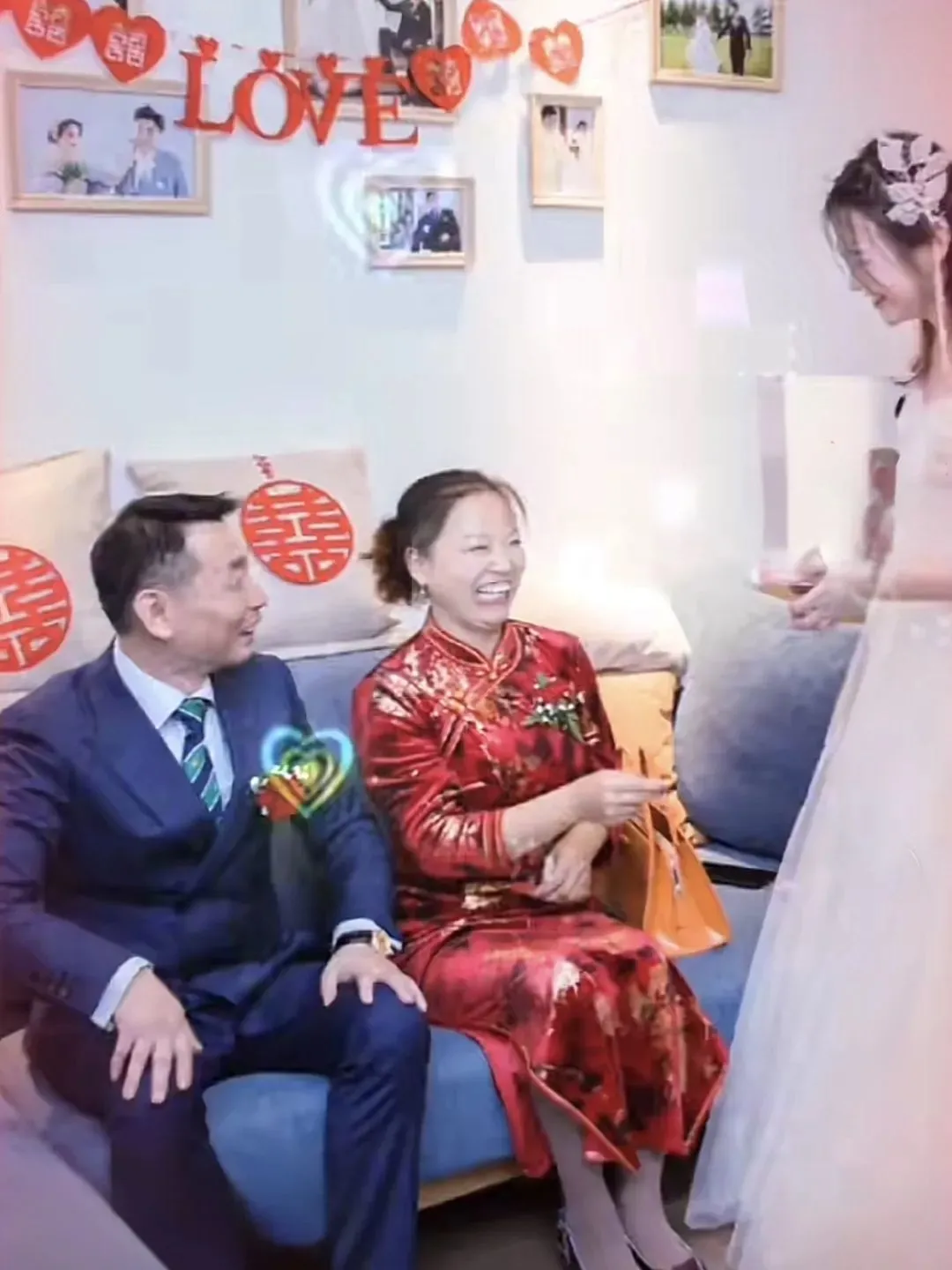 儿子大婚当天,胡友平穿了一条红色中式旗袍,上面绣着金色的花。新人敬茶改口时,她笑得咧开嘴,祝福“儿子和儿媳妇幸福美满”。