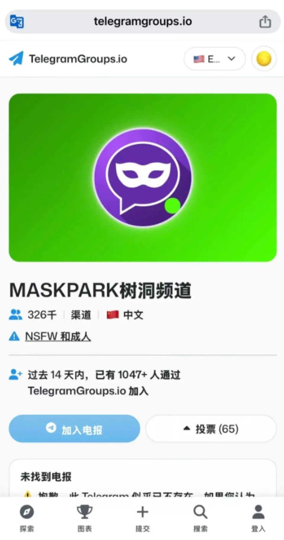 据悉,“MaskPark树洞论坛”依靠Telegram软件建立。Telegram(电报)是一款跨平台的即时通信软件,因其图标是一个纸飞机的形象,也被很多用户称为