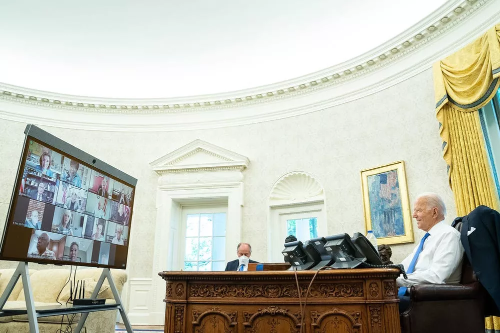 拜登喜欢挂罗斯福和汉密尔顿、杰斐逊等人的画,象征多元观点