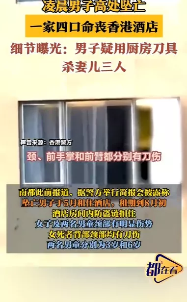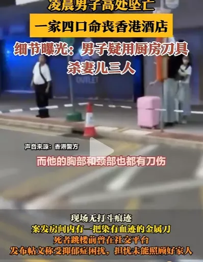 2024年7月27日凌晨,香港荃湾悦来酒店突发一起震惊社会的悲剧——一名男子从酒店高处坠下身亡,警方随后在其房间内发现三具尸体,包括一名女子和两名年幼男童,一家四口全数罹难。消息曝光后迅速引发公众关注。